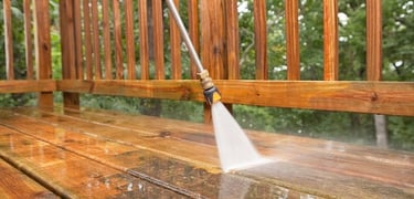 Pressure washing your deck to erase dirt and mildew, making it ready for gatherings and relaxation.